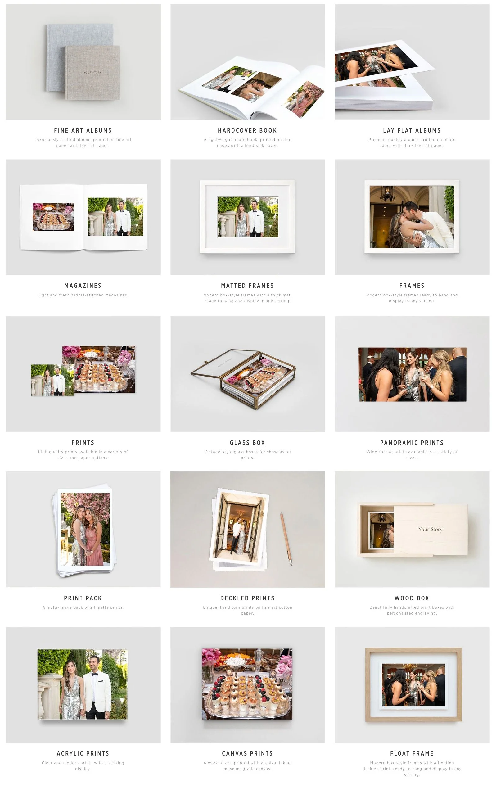 wEDDINGS RATES BEGIN AT $3,000 Standard package includes:one 12”x12” layflat book (30 pages)TWO 6”x6” Layflat books (30 pages)200 4x6 matte prints6 hours of photo coverage View fullsize A near endless amount of printing options conveniently integrated into your photo gallery Our in-house design staff will assist you in delivering your polished books and printsAny additional orders can be made a la carte Additional photographers available upon request we look forward to capturing these generational moments… BOOK NOW!